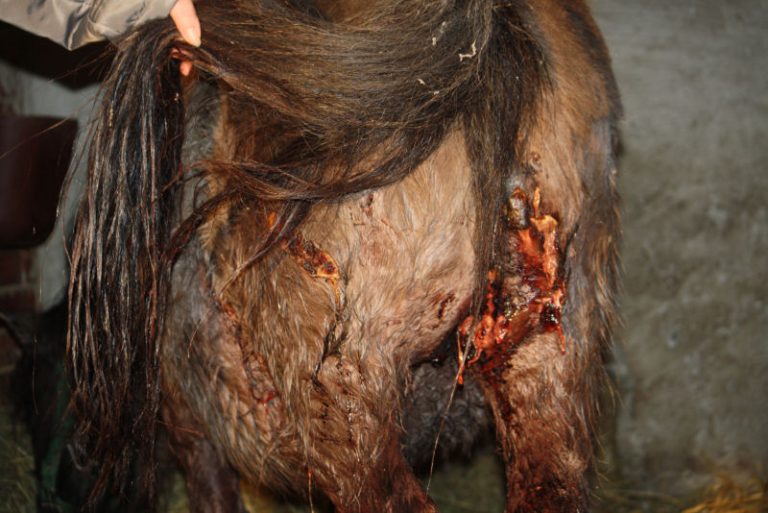 Wochenlang versorgten die tollen Pflegerinnen und Pfleger die Wunden von Blace und spülten diese täglich aus. Allmählich verheilten diese und es ging ihr von Tag zu Tag besser. So konnte meine Freundin dann auch ohne Komplikationen ihr Fohlen bekommen, worüber wir alle sehr erleichtert und hocherfreut waren – das Team vom Tierheim und ich.